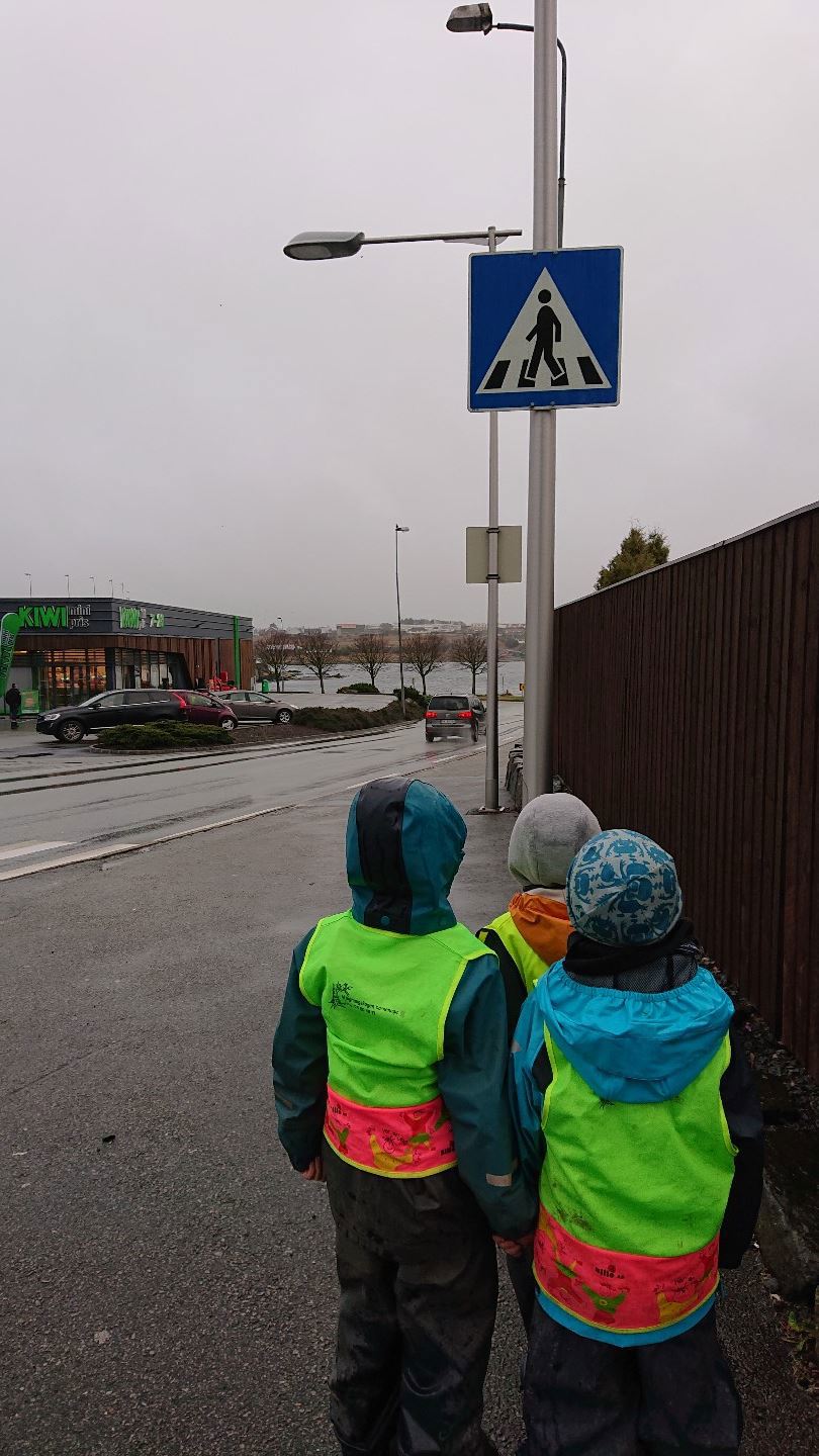 I arbeidet med temaet "Trygg i trafikken" gjør vi oppgaver inne og praktiske oppgaver ute. Vi linker temaet opp til skoleveien, legger vekt på refleksbruk og hvor det er trygt å ferdes når vi er ute som trafikanter. Vi leser "eventyret om trafikk-reglene", jobber med samtalebilder og lærer oss sangen "Se og bli sett" fra Trygg Trafikk.