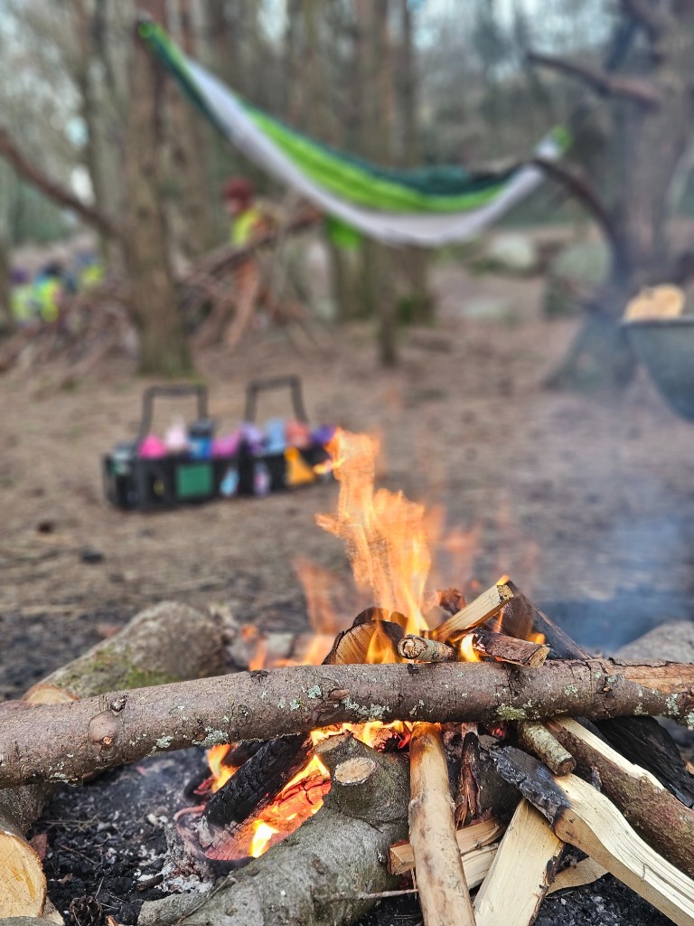 Her brenner vi bål, ser på hvordan forskjellige årstider påvirker naturen, spikker og har det veldig kjekt.