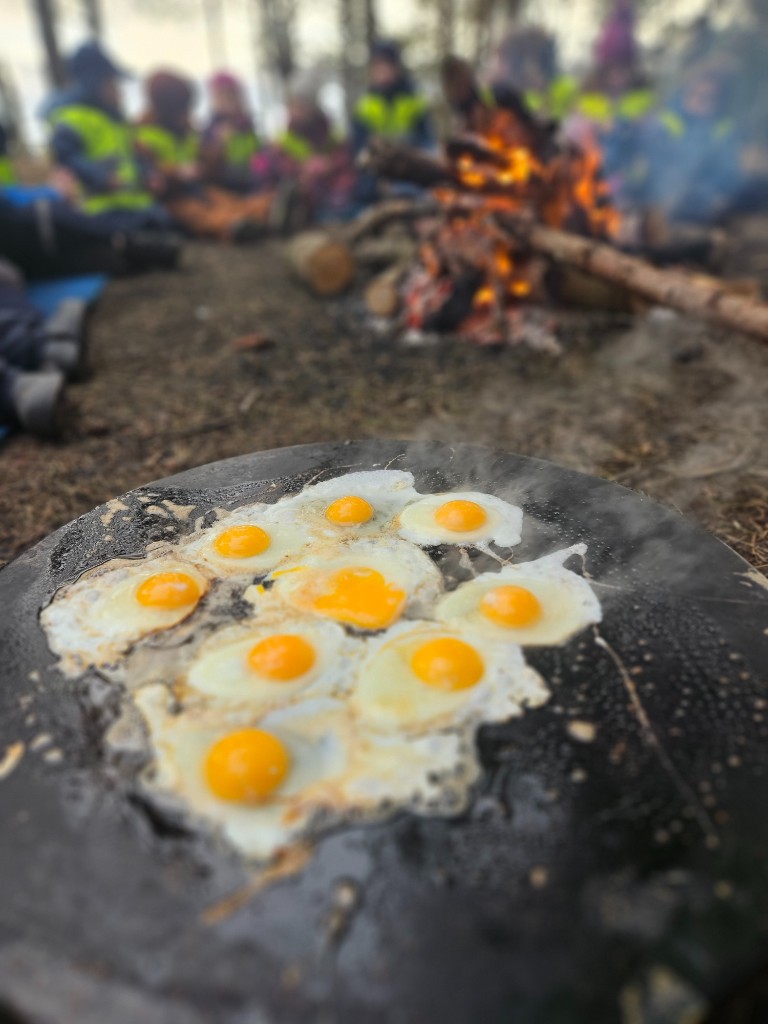 På avdeling Lyng, er de opptatt av å lære barna å lage bål, og lage mat ute. Her har de for eksempel laget egg ute på tur.