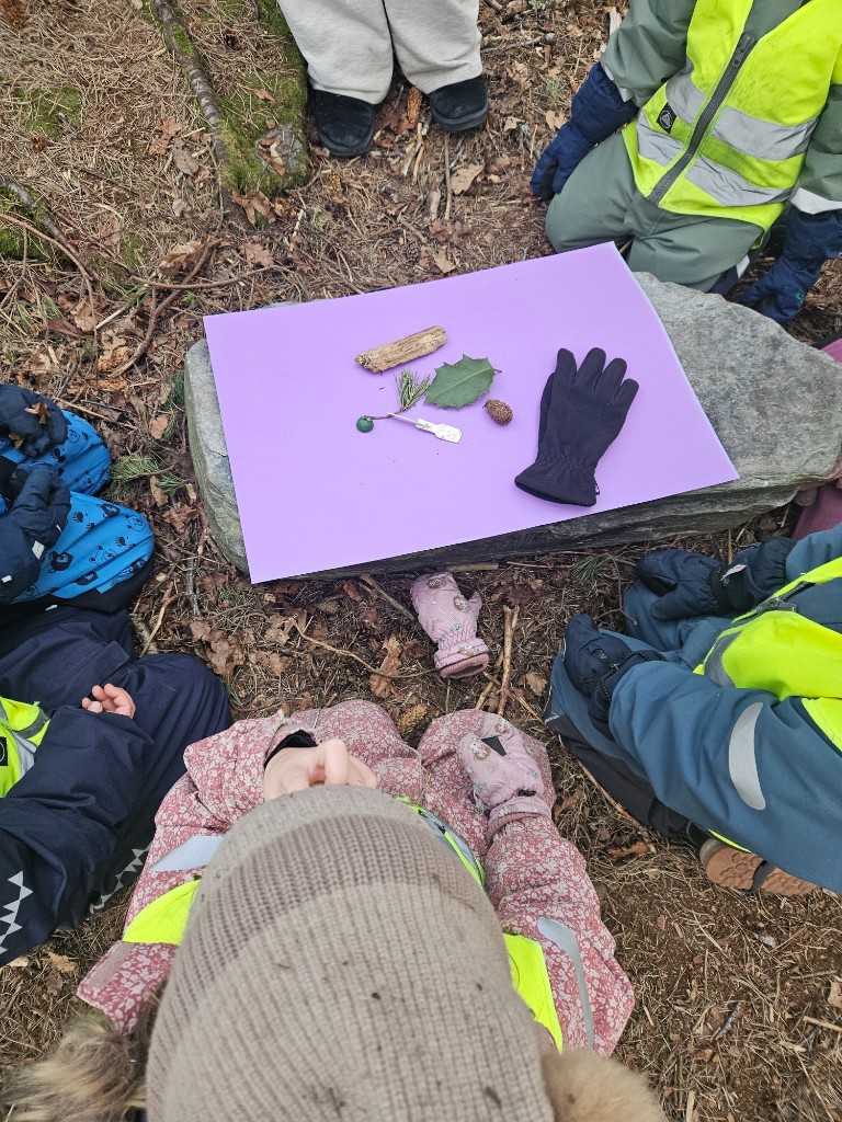 Vi ønsker å gi barna erfaringer i naturen hele året, og bruker skogen bak barnehagen aktivt.